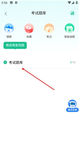 在考试题库界面,能够借助【错题】【收藏】等功能对习题进行管理,目前展示的是【橡皮障客观题】分类下的题库。