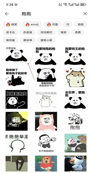 2、进入抱抱主题页面,这里汇集了各类与抱抱相关的表情包,你可以直接浏览,挑选合适的表情包用于和他人互动。