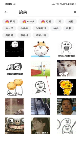 4、最后切换到搞笑主题页面,就能看到各种各样的搞笑表情包,能轻松找到可以活跃聊天气氛的内容来使用。