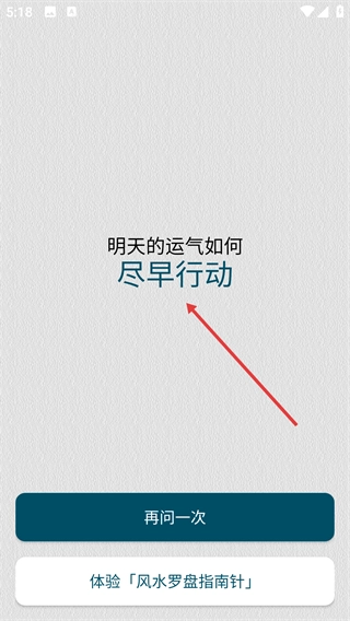 4、查看“答案之书”给出的结果(例如“尽早行动”),可以点击【再问一次】按钮来继续获取针对其他问题的指引。