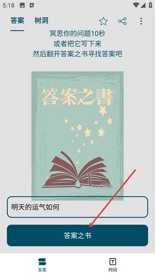 3、在确认输入的问题(例如“明天的运气如何”)后,点击【答案之书】按钮,即可启动结果生成的流程。