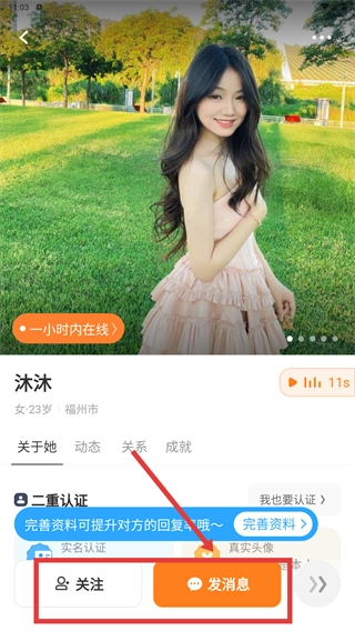 3、进入用户详情页后,点击“发消息”按钮,即可进入与该用户的聊天界面。