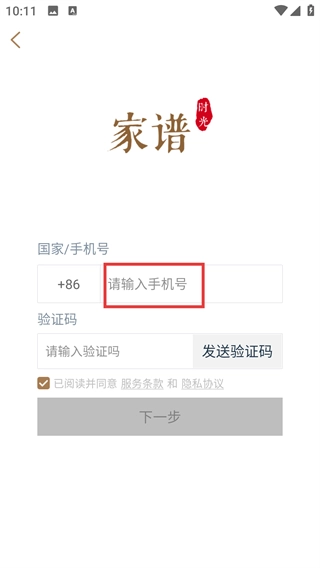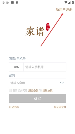 1、在族谱应用的登录界面,点击右上角的【新用户注册】按钮,即可跳转至注册流程页面。