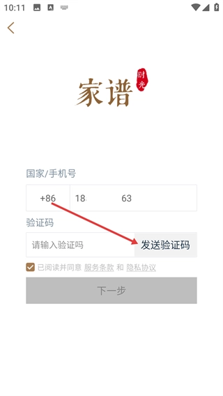 3、填写完号码后,点击【发送验证码】按钮,以获取注册所需的短信验证信息。
