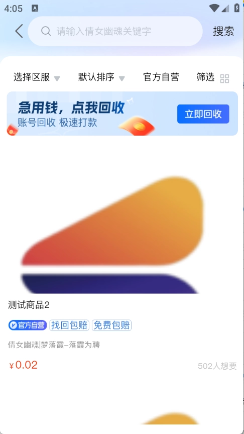 “我要买”页面汇聚了多种游戏账号类型,支持借助关键词开展精准搜索。