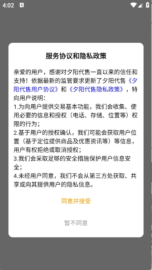 用户首先在3G游戏网夕阳代售平台,查看并同意隐私政策和用户协议。