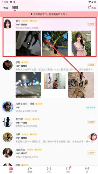 开启定位功能后,在同城页面浏览附近的用户,点击用户卡片就能进入该用户的详情页面。