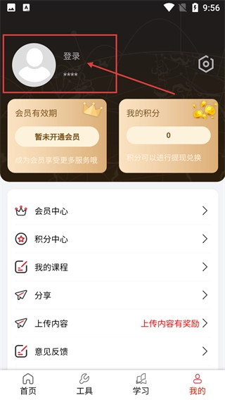 2、在【我的】页面,点击【登录】按钮可进入登录界面,也能查看【会员有效期】【我的积分】等个人相关信息。