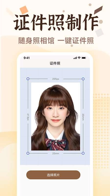 1、AI智能生成证件照,支持一寸、二寸、身份证尺寸等多种规格选择。