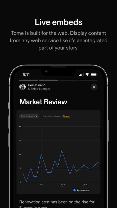 专注于您的想法,Tome 将处理其余部分。拖放式创建、响应式页面以及一键式主题意味着您无需花费时间来调整内容或应用品牌颜色。