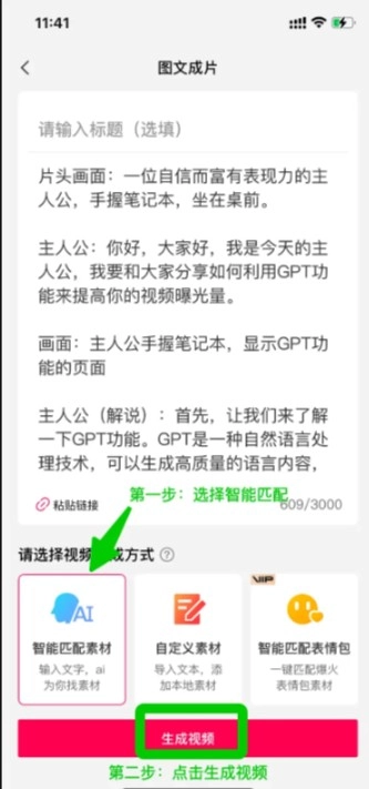 4.选择智能匹配素材,也可以自定义素材;