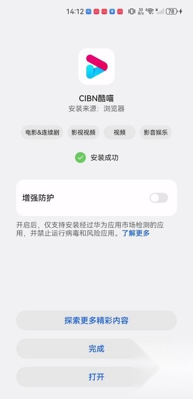 5、最终,出现绿色对号,说明“安装完成”,点击打开,即可体验。