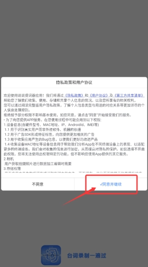 2、打开说话提词器应用,在隐私政策页面选择“同意并继续”选项。