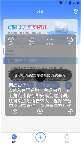 3、台词创建成功后,即可使用悬浮窗与提词板功能;