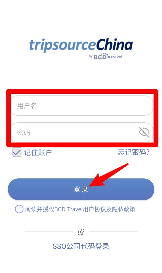 1. 启动软件后,可选择输入用户名和密码进行登录,也能通过sso公司代码完成登录操作。