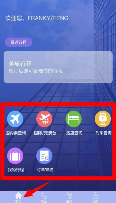 2.登录后提供各种出行方式以及酒店的查询功能