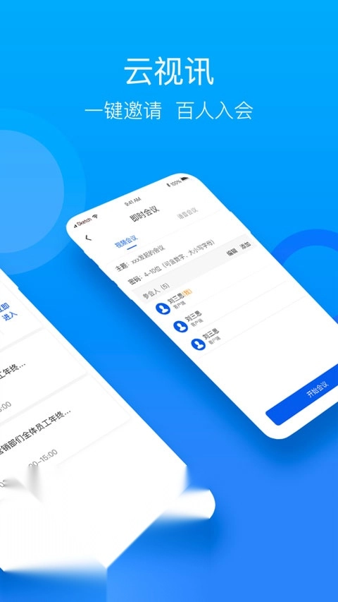 1. 具备多人视频会议支持能力,企业内所有相关人员均可同时在线参与会议。