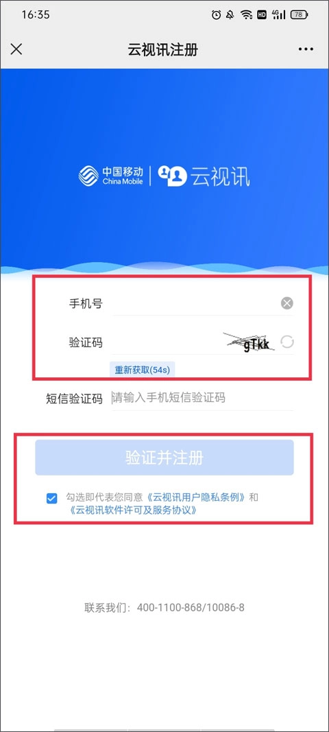 2、填写手机号、验证码以及短信验证码完成验证与注册操作,注册成功后,中国移动会将初始密码发送至你的手机。