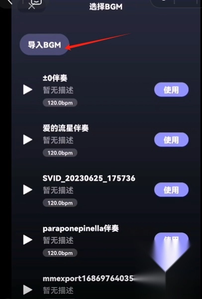 2.在编辑界面中,找到 BGM 选项,点击选择