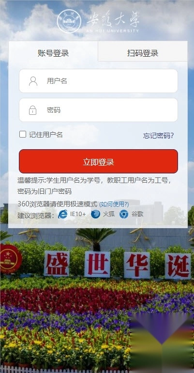 2、接着输入智慧安大教务系统的账号与密码,完成认证后就能通过平台的“常用链接”功能。