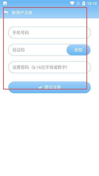 4、在新用户注册页面,依次填写【号码】、【验证码】以及6-16位由字母或数字组成的密码,填写完毕后点击【提交注册】按钮,即可完成账号注册流程。