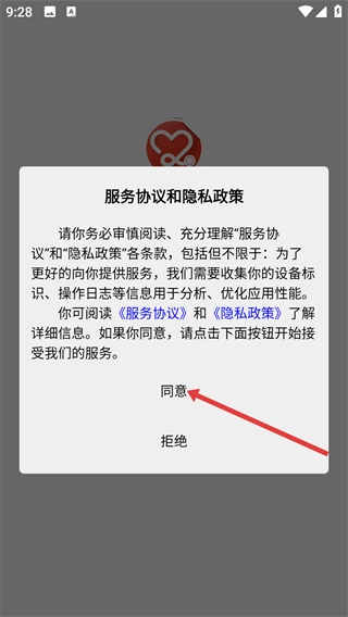 1、请仔细阅读【服务协议】与【隐私政策】中的相关条款,在了解设备标识及操作日志的收集用途后,点击【同意】按钮,即可继续使用本服务。