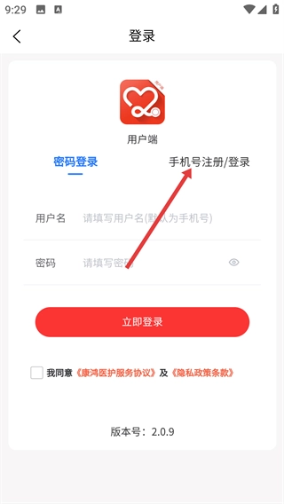 3、在【登录】页面,可选择【密码登录】或【账号注册/登录】方式,操作前需勾选相关协议。