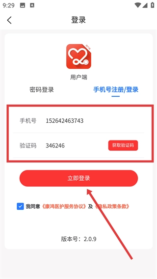 4、切换至【账号注册/登录】标签页,填写【账号】与【验证码】,勾选相关协议后点击【立即登录】按钮。