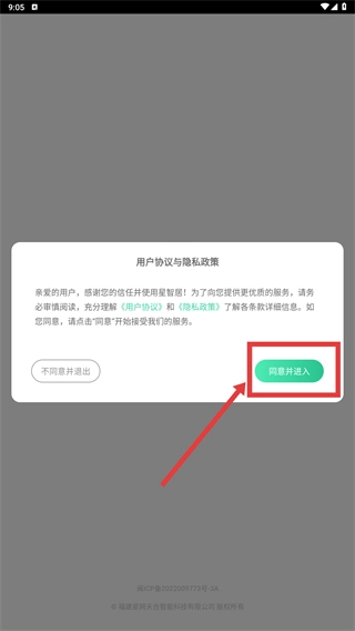 1、在【用户协议与隐私政策】弹窗中,点击【同意并进入】按钮,即可进入应用主界面。