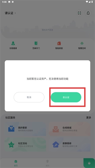 3、当出现认证提示弹窗时,点击弹窗中的【去认证】按钮,即可进入具体的认证操作流程。