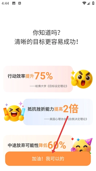 3、查看目标设定相关数据后,点击【加油!我可以的】按钮,确认并进入后续流程,推进个人规划设置。