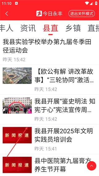 4、开启【关怀模式】后,页面会以更清晰的方式展示资讯内容,若需恢复原显示模式,可通过【退出关怀模式】按钮操作。