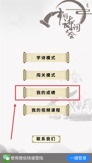2、在功能选择页面,点击【我的成绩】选项,进入学习数据统计界面,查看学习相关记录。