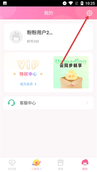 2、进入“我的”页面后,点击右上角的对应图标,进入设置界面,即可查看账号信息、VIP特权中心等内容。