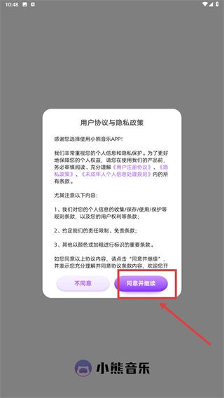 1、仔细阅读《用户协议与隐私政策》的内容后,点击“同意并继续”按钮,确认接受协议即可进入后续流程。