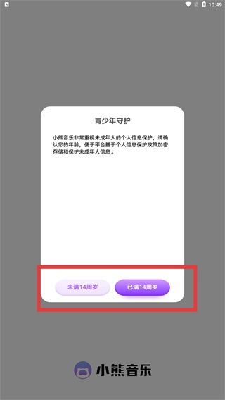 2、进入【青少年守护】界面后,依据实际年龄情况,选择【未满14周岁】或者【已满14周岁】这两个选项,以此完成年龄认证流程。