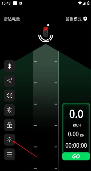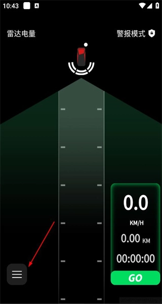 1、启动骑行宝应用,进入主界面后,可查看雷达电量等相关信息,接着点击左侧的菜单按钮以展开各项功能选项。