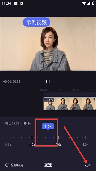 4、在变速设置界面选定目标速度(例如1.6x),确认无误后点击相应按钮,即可完成视频速度的调整。