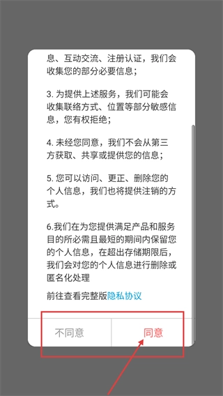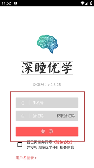 1、在弹出的隐私协议弹窗里,仔细阅读条款内容后,点击【同意】按钮,即可进入“深瞳优学”的登录操作界面。