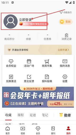2、进入【我的】页面后,点击【立即登录】区域,即可进入注册/登录界面,在该界面可选择适合自己的登录方式。