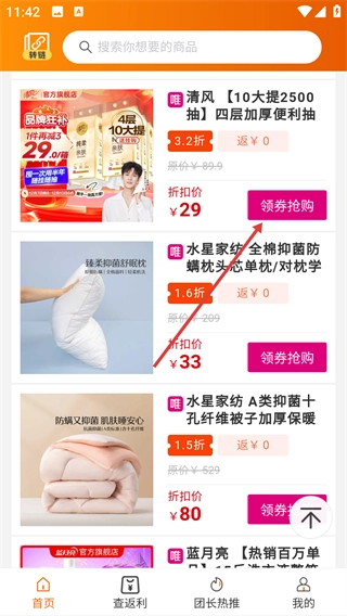 4、选定目标商品后,点击【领券抢购】按钮,就能进入商品详情页领取优惠券并完成购买。