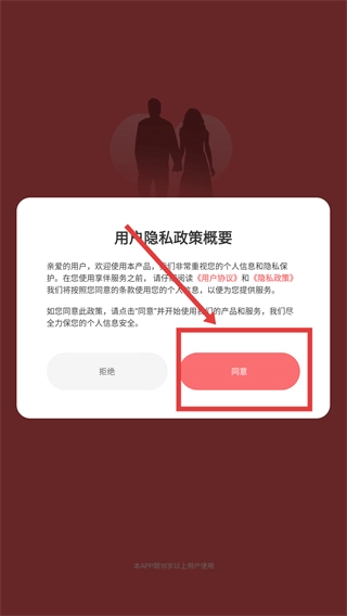 1、在“用户隐私政策概要”弹窗中,点击【同意】按钮,确认该协议后即可进入应用流程。