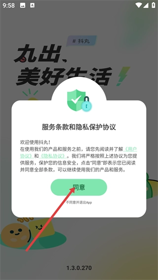 1、仔细阅读【抖丸】的【用户协议】与【隐私协议】,在充分了解相关服务规则后,点击【同意】按钮,即可继续进行应用的使用流程。