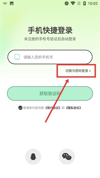 2、在【快捷登录】界面,可先填写账号,也能点击【切换为密码登录】选项,切换到密码登录模式。