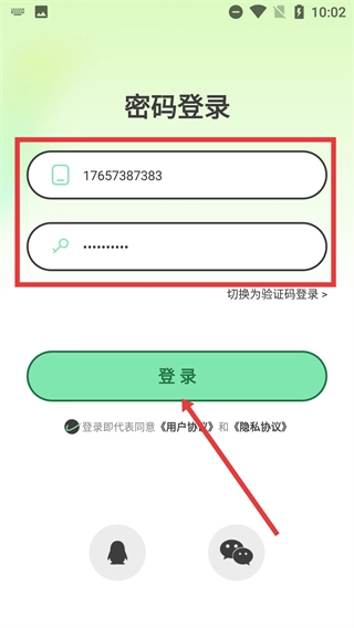 3、在【密码登录】界面输入对应的号码和密码,确认已勾选相关协议,完成登录前的准备工作。