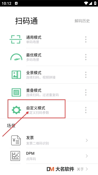 2、在软件主界面选择【自定义模式】选项,即可进入扫码参数自定义设置页面,以此适配不同的扫码场景。