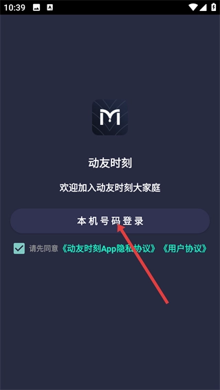 2、在【动友时刻】的登录界面,先确认相关协议已勾选,接着点击【本机号码登录】按钮,以此来启动账号的登录验证流程。