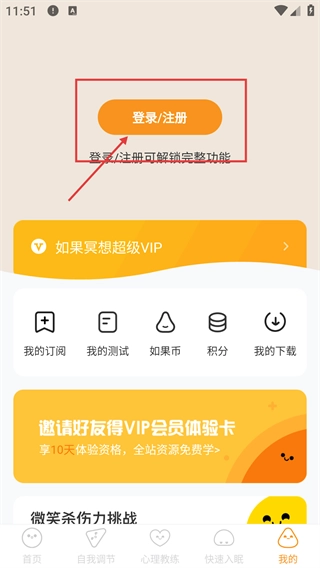 2、点击【登录/注册】按钮,即可进入账号登录或注册的页面。