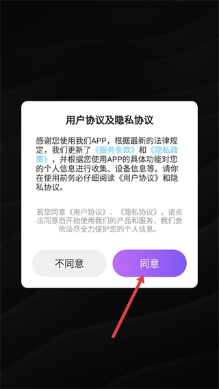 1、请先阅读【用户协议】与【隐私政策】,在了解信息收集方式及服务规则后,点击【同意】按钮,以便继续进行应用的后续操作流程。