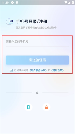 2、在【账号登录/注册】页面,输入账号,勾选相关协议后点击【发送验证码】按钮,就能收到短信验证。